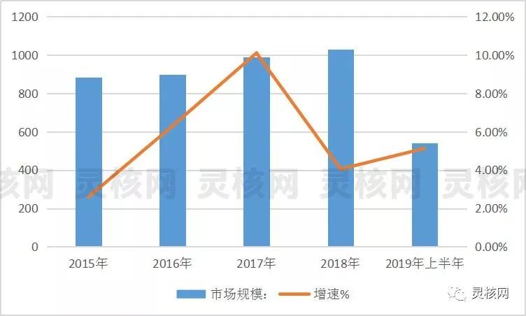 2015-2019年中国胶粘剂行业市场规模及增速对比